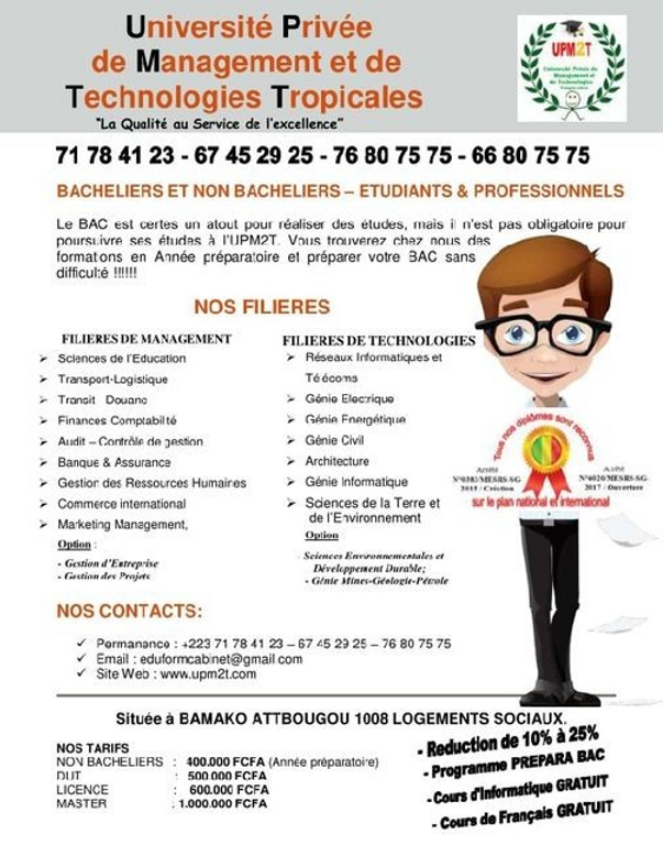 L’UPM2T est une université privée qui propose un large éventail de programmes en management et en technologie. Notre mission est de fournir à nos étudiants les connaissances et les compétences dont ils ont besoin pour réussir dans leurs domaines de prédilection. Des professeurs expérimentés et des installations de pointe, nous nous engageons à offrir une éducation de haute qualité qui prépare nos diplômés au monde moderne. Merci d’avoir envisagé UPM2T pour votre parcours académique.L’UPM2T est une université privée qui propose un large éventail de programmes en management et en technologie. Notre mission est de fournir à nos étudiants les connaissances et les compétences dont ils ont besoin pour réussir dans leurs domaines de prédilection. Des professeurs expérimentés et des installations de pointe, nous nous engageons à offrir une éducation de haute qualité qui prépare nos diplômés au monde moderne. Merci d’avoir envisagé UPM2T pour votre parcours académique.